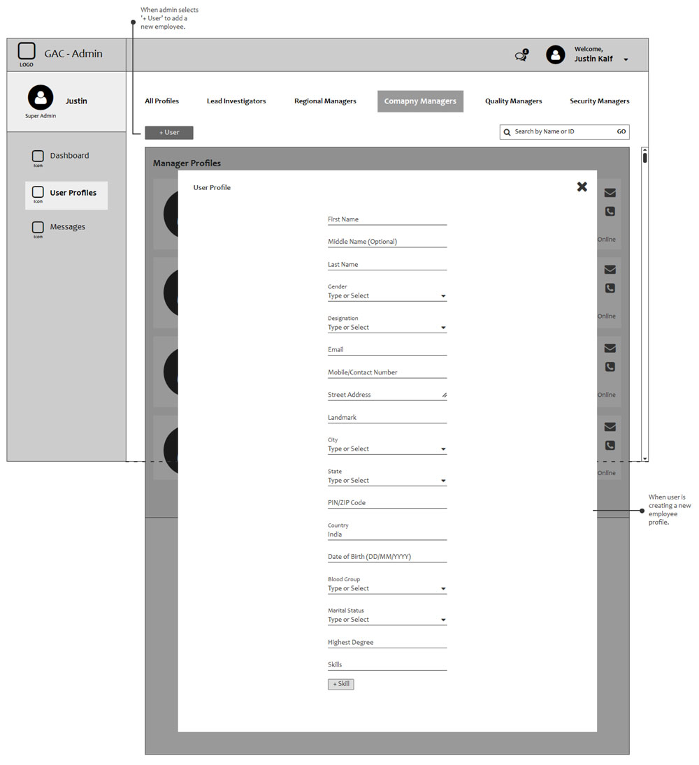 Gulf Agency Company (Dubai) - User Management Wireframe